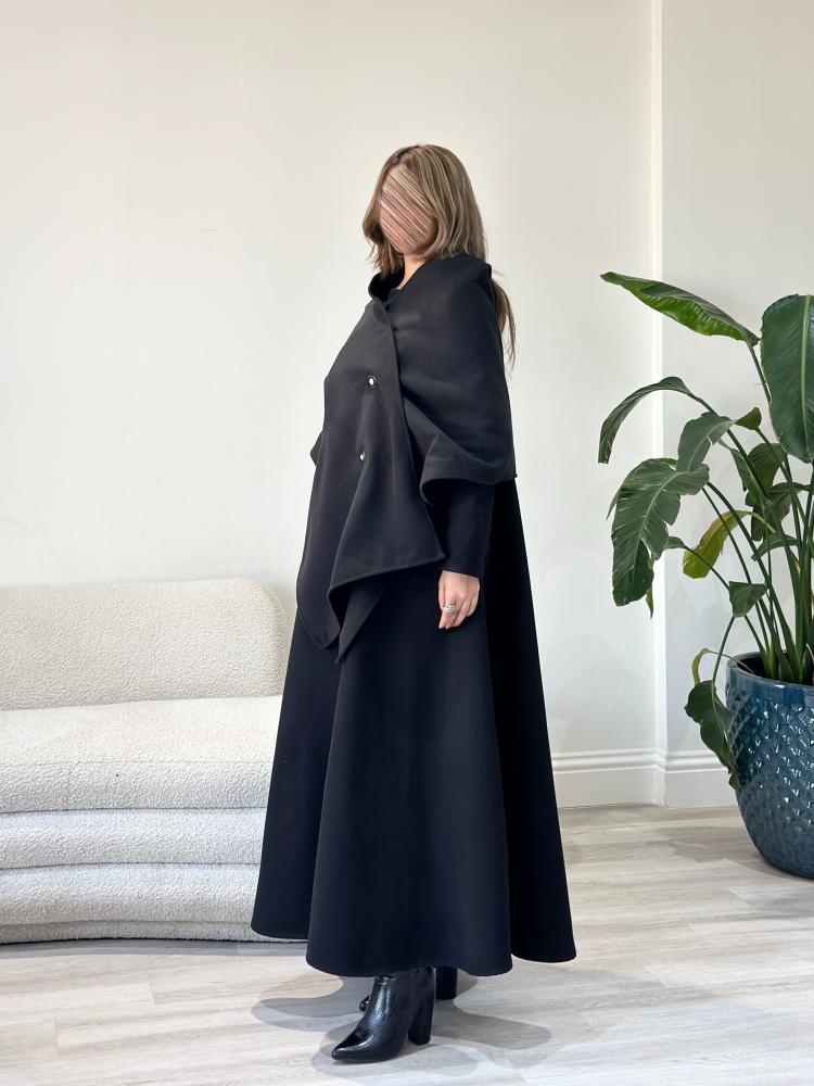 🌟 عباية جوخ أنيقة مع شال بأزرار فاخرة – إطلالة متعددة الاستخدامات