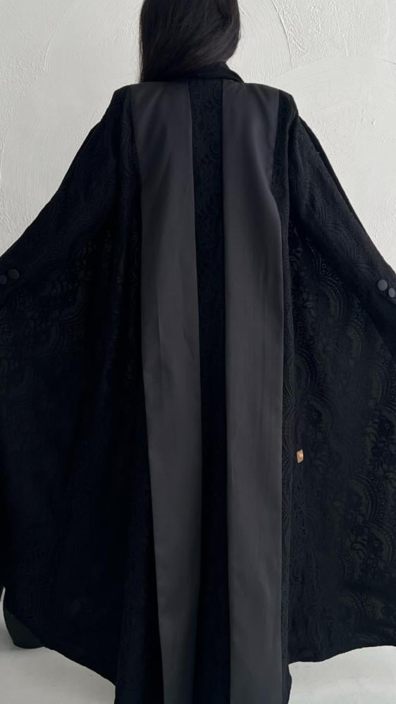 تتميز هذه العباية البليزر بقصتها العصرية التي تمنحكِ مظهرًا واثقًا وجذابًا، بينما تنسدل أطرافها بقصة عبايه كلوش انسيابية تضفي لمسة ملكية ساحرة على حركتك. أما تفاصيل عباية الدانتيل الكوري الفاخر، فتنسج حكاية من الجمال والرقي، مع بطانة ناعمة من قماش البونجيه تضمن لكِ راحة لا تضاهى.